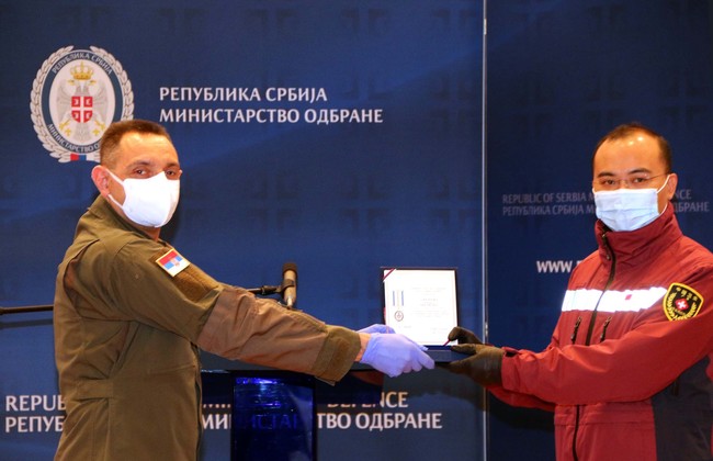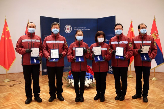 Das serbische Verteidigungsministerium hat dem chinesischen medizinischen Expertenteam am Donnerstag die höchste Ehrenmedaille Serbiens verliehen, um seine Beiträge und Bemühungen bei der Unterstützung im Kampf gegen die COVID-19-Epidemie auszuzeichnen.