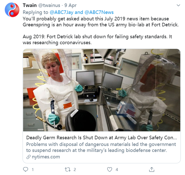 Am 10. März wurde im Petitionsnetzwerk des Weißen Hauses eine Petition gestartet, um die US-Regierung aufzufordern, den wahren Grund für die Schließung des Labors in Fort Detrick im August 2019 offenzulegen, um zu klären, ob es im Labor ein Virusleck gegeben hat.