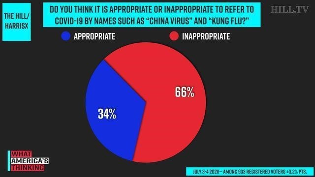 Die meisten US-Amerikaner lehnen die Bezeichnungen „China-Virus“ und „Kungfu-Grippe“ ab. Dies geht aus einer am Dienstag veröffentlichten Meinungsumfrage hervor, die von der US-Zeitung „The Hill“ gemeinsam mit der US-Beratungsfirma HarrisX durchgeführt wurde.