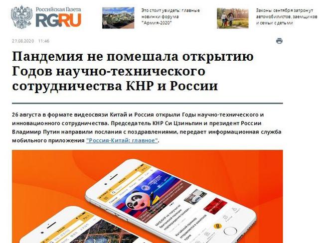 Auf der Webseite der russischen Zeitung Rossijskaja Gaseta wurde am Donnerstag unter dem Titel „Die Epidemie wird die chinesisch-russische Zusammenarbeit in Wissenschaft und Innovation nicht verlangsamen“ veröffentlicht. Die Autoren betonen in ihrem Text, dass die enge Zusammenarbeit in den Bereichen Wissenschaft und Technik zwischen China und Russland zweifelsohne die Zuversicht in beiden Ländern bestärkt habe, die Herausforderungen der COVID-19-Pandemie gemeinsam bewältigen zu können.