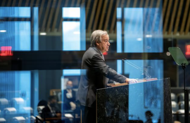 António Guterres sagte in seiner Rede, die Welt könne die Spaltung zwischen China und den Vereinigten Staaten nicht ertragen. Technische und wirtschaftliche Streitigkeiten zwischen Ländern könnten sich zu geopolitischen und militärischen Auseinandersetzungen entwickeln. Ähnliche Situationen sollten um jeden Preis vermieden werden. Es sei wichtig, die Einheit der internationalen Gemeinschaft aufrechtzuerhalten.