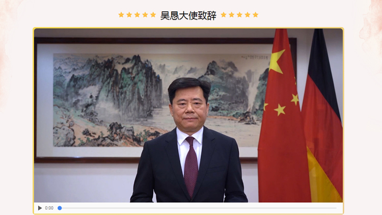 In einer Videobotschaft sagte Chinas Botschafter in Deutschland, Wu Ken, die weltweit bekannten Errungenschaften der wirtschaftlichen Entwicklungen in China seit der Gründung der Volksrepublik seien hoch anerkannt. Diese Leistungen seien gerade die Erfolgsgeschichten über die Führung des chinesischen Volkes durch die KP Chinas in ihrem entschlossenen Streben nach dem Weg der Entwicklung.