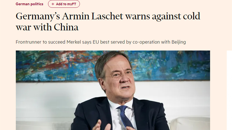 In einem Interview mit der britischen Zeitung „Financial Times“ (FT) hat CDU-Chef Armin Laschet nun vor einem Kalten Krieg mit China gewarnt.