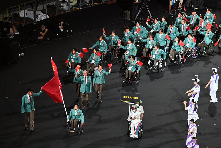 Bogenschützin Zhou Jiamin und Leichtathlet Wang Hao trugen die Fahnen der chinesischen Delegation. China hat eine 437-köpfige Delegation zur Teilnahme an der diesjährigen Paralympischen Spiele entsandt. Die 251 Sportler werden an 20 großen und 341 kleinen Sportdisziplinen teilnehmen. Es handelt sich um die Spiele mit den meisten Großdisziplinen, an denen China teilnehmen wird.