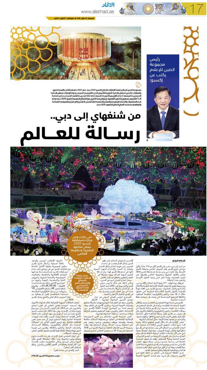 In einem Zeitungs-Artikel, der in den Arabischen Emiraten veröffentlicht wurde, hieß es, zum ersten Mal in ihrer 170-jährigen Geschichte finde eine Expo im Nahen Osten statt. Die Weltausstellung in Dubai bilde ein Fenster zur Demonstration der Wirtschaftsentwicklung, wissenschaftlich-technologischen Innovationen und blühenden Kulturen in den Arabischen Emiraten sowie eine wichtige Plattform für eine nachhaltige sozioökonomische Entwicklung in der Zeit nach der Epidemie.