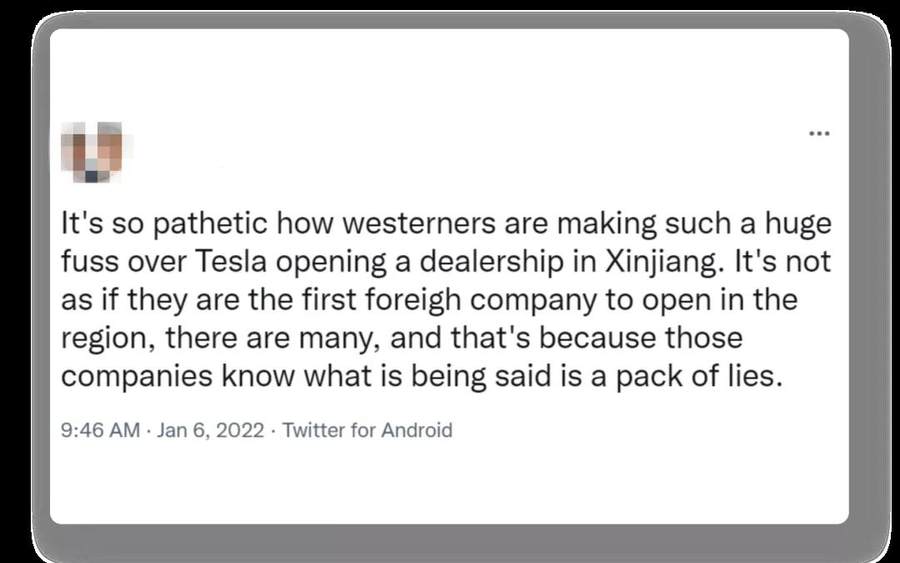 Die Gründe für die Entscheidung von Tesla liegen für viele Menschen auf der Hand. Ein Netizen kommentiert: „Es ist traurig, dass der Westen so großes Aufsehen macht, dass Tesla ein Geschäft in Xinjiang eröffnet. Tesla ist nicht das erste ausländische Unternehmen, das sich in der Region niederlässt. Es gibt dort bereits eine ganze Reihe ausländischer Unternehmen, die wissen, dass die Behauptungen des Westens (gegen Xinjiang) Unsinn sind.“