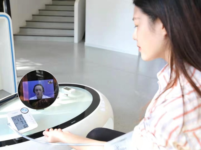 In dem Internet-Krankenhaus ist auch ein intelligentes Gerät namens „Cloud-Medizinkasten“ zu sehen. Dies ist ein intelligentes Terminal, das speziell für Dorfärzte entwickelt wurde. Indem man den Kasten direkt an ein externes Gerät anschließt, können von Zuhause mehr als zehn Untersuchungen durchgeführt werden, wie etwa die Messung der Körpertemperatur, des Blutdrucks, des Blutzuckers oder ein Elektrokardiogramm. Darüber hinaus können die Dorfärzte noch dadurch standardisierte Unterstützung für die medizinischen Diagnosen und Behandlungen für mehr als 50 oft auftretende Krankheiten erhalten.