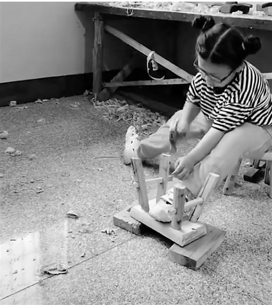 Am liebsten bearbeitet Maomao aber Holz. Ihr Großvater arbeitet seit mehr als 50 Jahren als Zimmermann und hat viele der Möbel in ihrem Haus hergestellt. Nach dem Ausbruch der COVID-19-Pandemie Anfang des Jahres konnte Maomao lange Zeit nicht in den Kindergarten gehen und hat von ihrem Großvater zu Hause Holzbearbeitung erlernt.