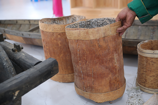 Als Na Chunlin jung war, jagte und schlug er Holzzelte auf. In der Handwerkswerkstatt des Dorfes Liemin stellt er Heuschreckenkäfige aus Birkenrinde her. Die Evenki legen Heuschrecken heufig in ihre Käfige und verwenden sie als Köder, um im Fluss Arun zu fischen. Seine Boote, Vorratsbehälter und Werkzeugzubehörteile wurden alle aus Birkenrinde gemacht. Na Chunlin sagte, dass er in diesem Jahr bereits viele Aufträge für Birkenrindeprodukte erhalten habe und voraussichtlich 40.000 Yuan verdienen werde. Die Miete des Landes könne ihm auch mehr als 30.000 Yuan bringen.