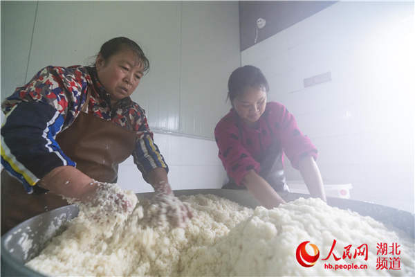 Die Brennerei „Sanwanbuguogang“, was übersetzt in etwas „betrunken durch drei Schüsseln Reiswein“ bedeutet, ist die erste Brennerei in Fangxian. Die Verantwortliche Xian Yan erklärt: „Mein Vater hat diese Brennerei gegründet und seitdem sind schon fast 30 Jahre vergangen. Am Anfang konnten wir jährlich nur hunderte Liter Reiswein brennen, aber heute sind es schon mehr als hunderttausend Liter. Dadurch erreichen wir einen jährlichen Produktionswert in Höhe von Millionen Yuan.“