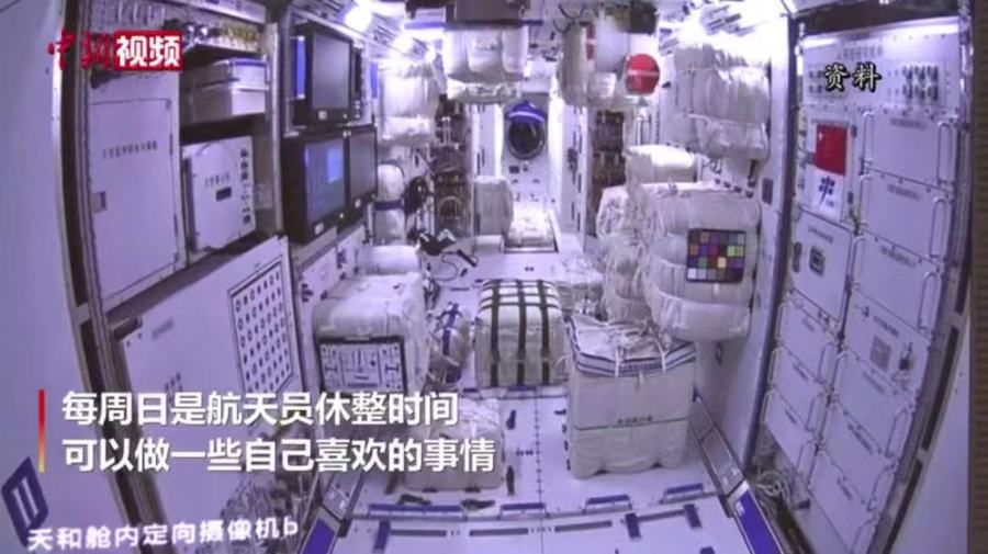 In der Raumstation gibt es noch drei einzelne Schlafsektionen und eine Toilette. In der Trainingssektion können die Astronauten zwischen einem Laufband und einer Fahrradmaschine wählen, um sich fit zu halten. Nach einer Nachtruhe im Kernmodul installierten die drei Taikonauten die WLAN-Einrichtung in der Raumstation.