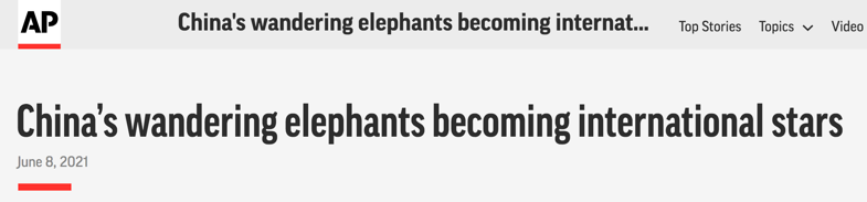 Am 8. Juni veröffentlichte die Associated Press auf ihrer Website einen Artikel mit dem Titel „Chinas wandernde Elefantenherde wird zum internationalen Star“.