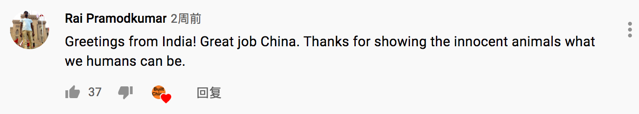 Ein indischer Netizen namens Rai Pramodkumar twitterte: „Gut gemacht, China! Danke, dass Sie diesen unschuldigen Tieren menschliche Güte entgegenbringen.“