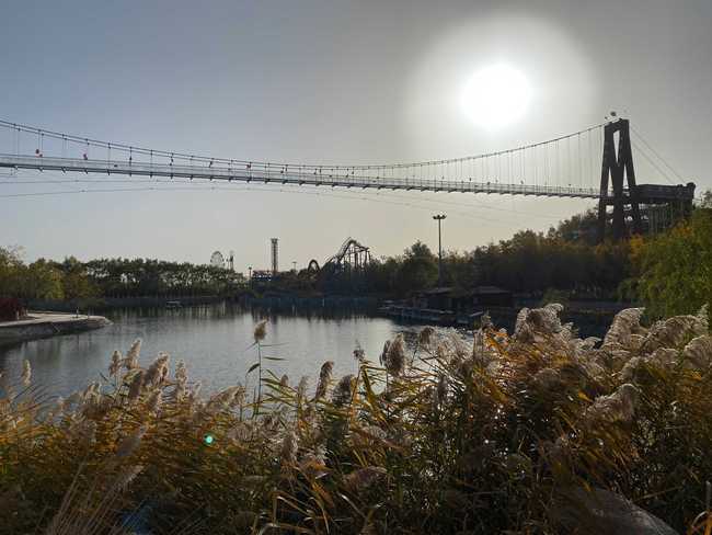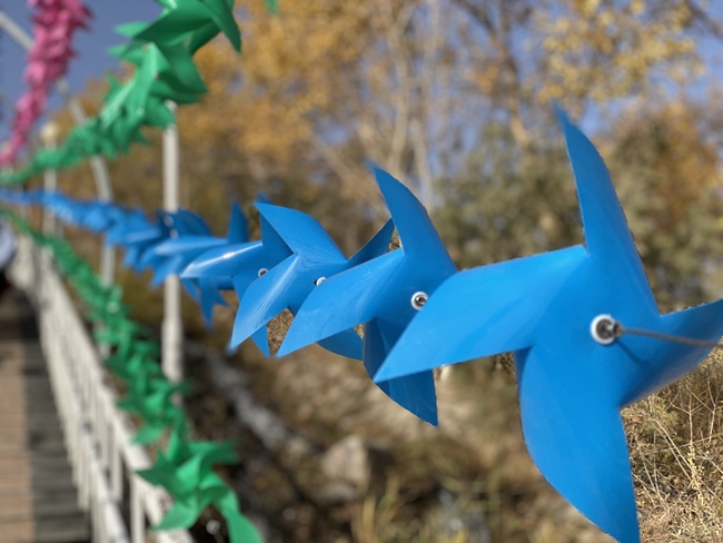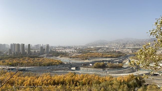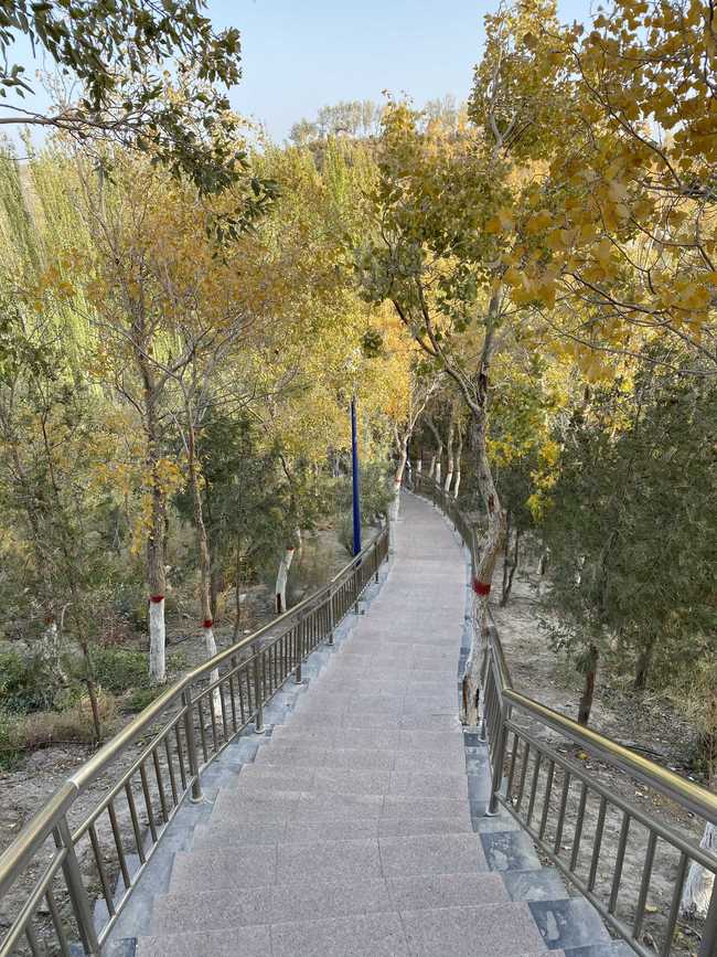 Die Bilder zeigen den Freizeitpark Longshan in Korla. Er ist ein Bestandteil des Aufforstungsprojektes der Stadt.