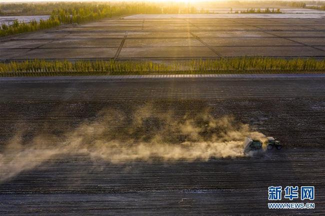 Auf den Baumwollfeldern im Landkreis Shaya im Gebiet Aksu (Uigurisches Autonomes Gebiet Xinjiang) ist derzeit reger Betrieb. Xinjiang ist das Hauptanbaugebiet von Baumwolle in China. In der herbstlichen Erntesaison können heutzutage mehr als 75 Prozent der gesamten Baumwollen in Shaya von Maschinen geerntet werden.