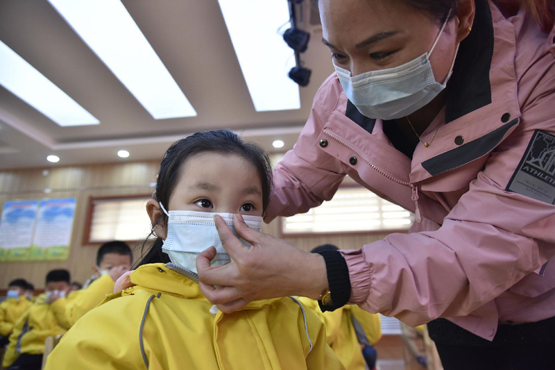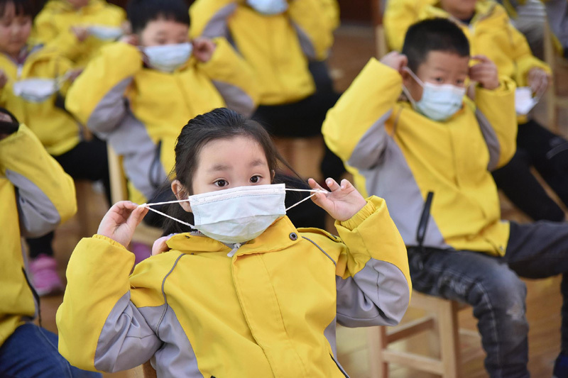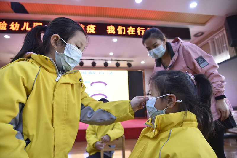 Wie man Masken richtig trägt und sich die Hände wäscht, das haben die Kinder in einem Kindergarten in der ostchinesischen Provinz Shandong kürzlich gelernt. Inmitten der COVID-19-Pandemie haben die Erzieher im Kindergarten den Kindern wissenschaftliche Vorbeugungsmaßnahmen gegen die Pandemie erklärt, um ihr Bewusstsein bei der Seuchenprävention zu schärfen. (Fotos von VCG)