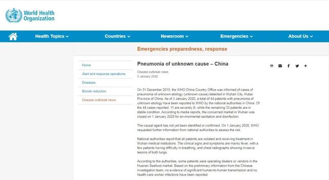 Erstens warnte die WHO den Rest der Welt, bereits zwei Tage nachdem die Volksrepublik am 3. Januar die erste Infektion offiziell gemeldet hatte, vor einer Lungenentzündung mit unklarer Ursache. Seit dem 7. Januar informiert die WHO regelmäßig bei Telefongesprächen mit den Gesundheitsbehörden aller Länder, darunter auch denen der USA, über die Epidemie. Zu dem WHO-Expertenteam, das im Februar China inspizierte, gehörten außerdem auch zwei US-Experten.