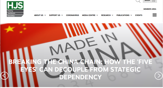 Einem am 14. Mai von der Henry Jackson Society veröffentlichten Bericht zufolge wurden Artikel, die in hohem Maße von China abhängig sind, herausgefunden. Die „Fünf-Augen“-Allianz müsse sicherstellen, dass sie in diesen Bereichen nicht von China abhängig sei und China gleichzeitig eingeschränkt werde.