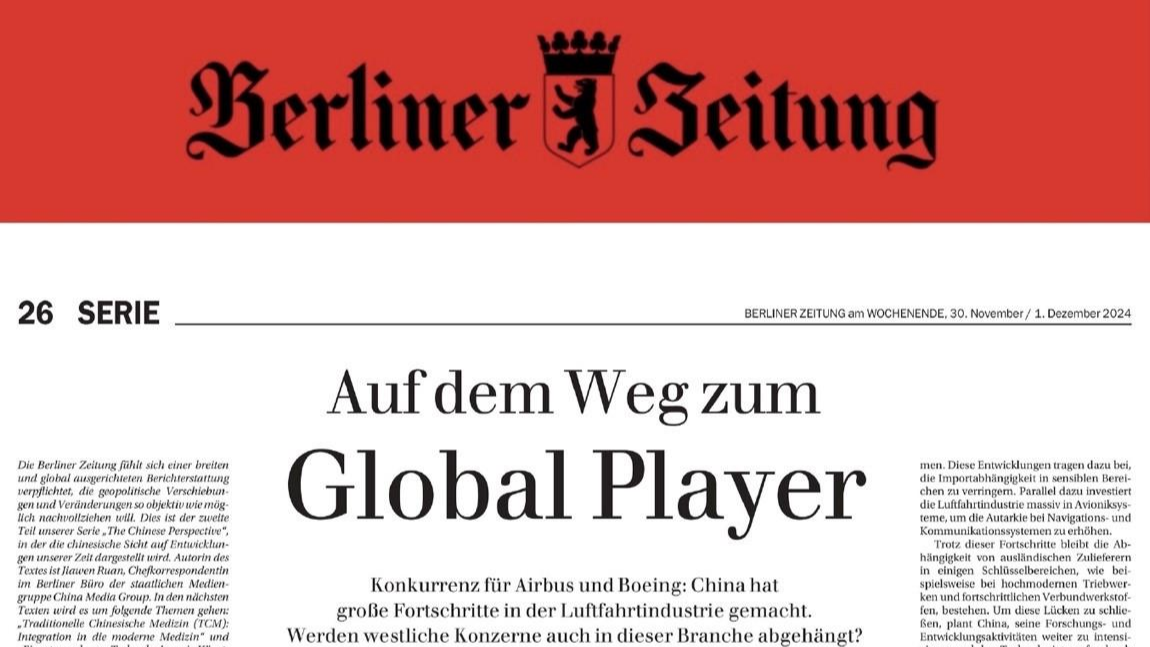CMG-Korrespondentin veröffentlicht Artikel über Chinas Luftfahrtindustrie in „Berliner Zeitung“