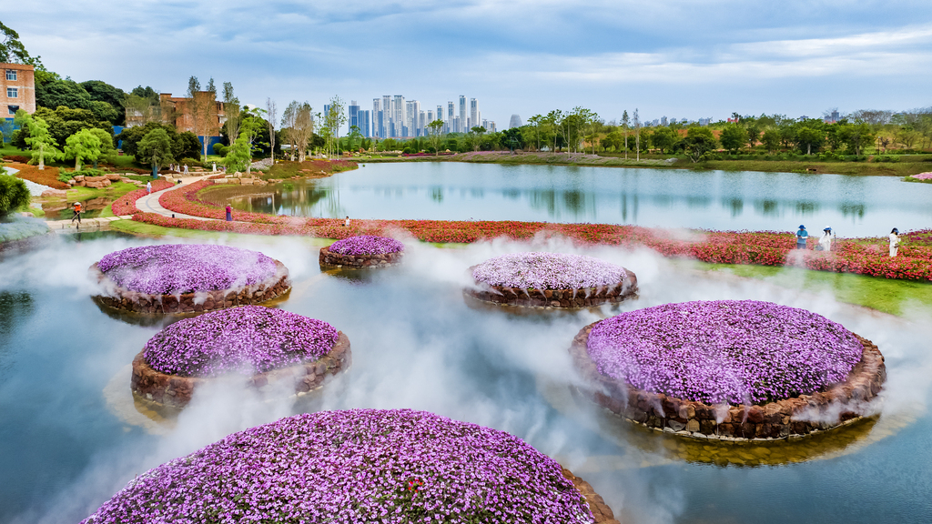 Am 11. Mai strömten zahlreiche Besucher in den Qiushi-Garten des Qingxiu-Bergparks in Nanning im Autonomen Gebiet Guangxi der Zhuang, um die Sommerblumen in voller Blüte zu bewundern. Kosmeen, Spinnenblumen und Zierquitten verwandelten das Gelände in ein farbenfrohes Blütenmeer. Die geschwungenen Pfade luden zu entspannten Spaziergängen ein – Naturgenuss pur mitten in der Stadt. (Fotos von VCG)