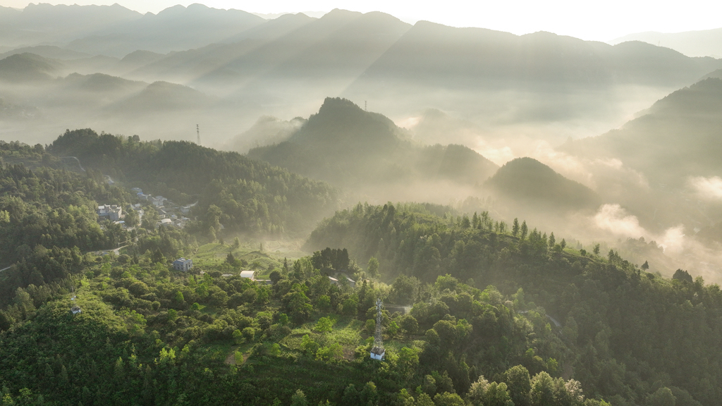 In den frühen Morgenstunden des 13. Juni zeigt sich das Dorf Zhengjia im Autonomen Kreis Youyang der Tujia und Miao in zauberhaftem Licht: Nebelschwaden umspielen die Berge, während die ersten Sonnenstrahlen goldene Konturen auf die Gipfel zeichnen. Dank seiner spektakulären Natur entwickelt die Region einen naturnahen Tourismus und zieht Fotografen aus ganz China an, die hier ein „Paradies über den Wolken“ einfangen wollen. (Fotos von VCG)