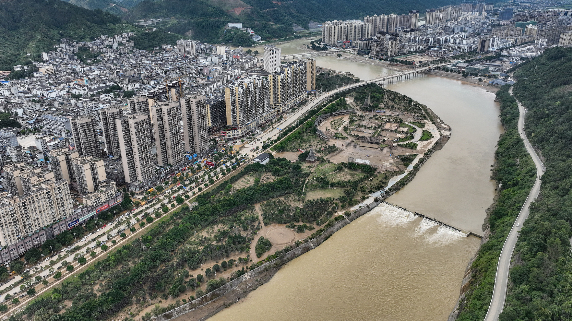 Hochwassergeschädigter Bezirk im Südwesten Chinas wieder in höchster Alarmstufe
