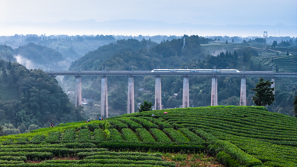 Ernte des Herbsttees in Sichuan