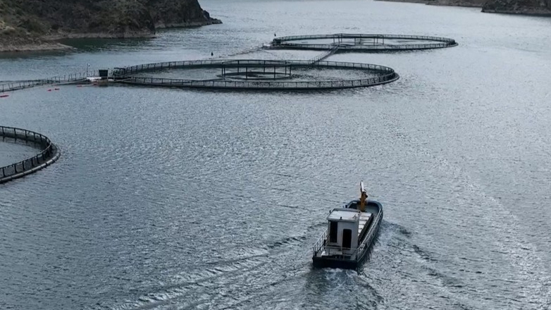 Lachszucht in den Bergen in Xinjiang