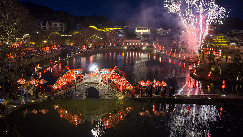 Fischlaternen erhellen das nächtliche Dorf Chengkan in Anhui