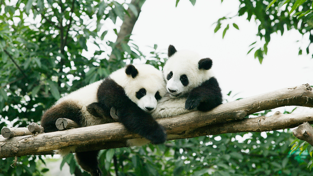 Zwei Baby-Pandas beim Kuscheln und Gezänk in China gefilmt