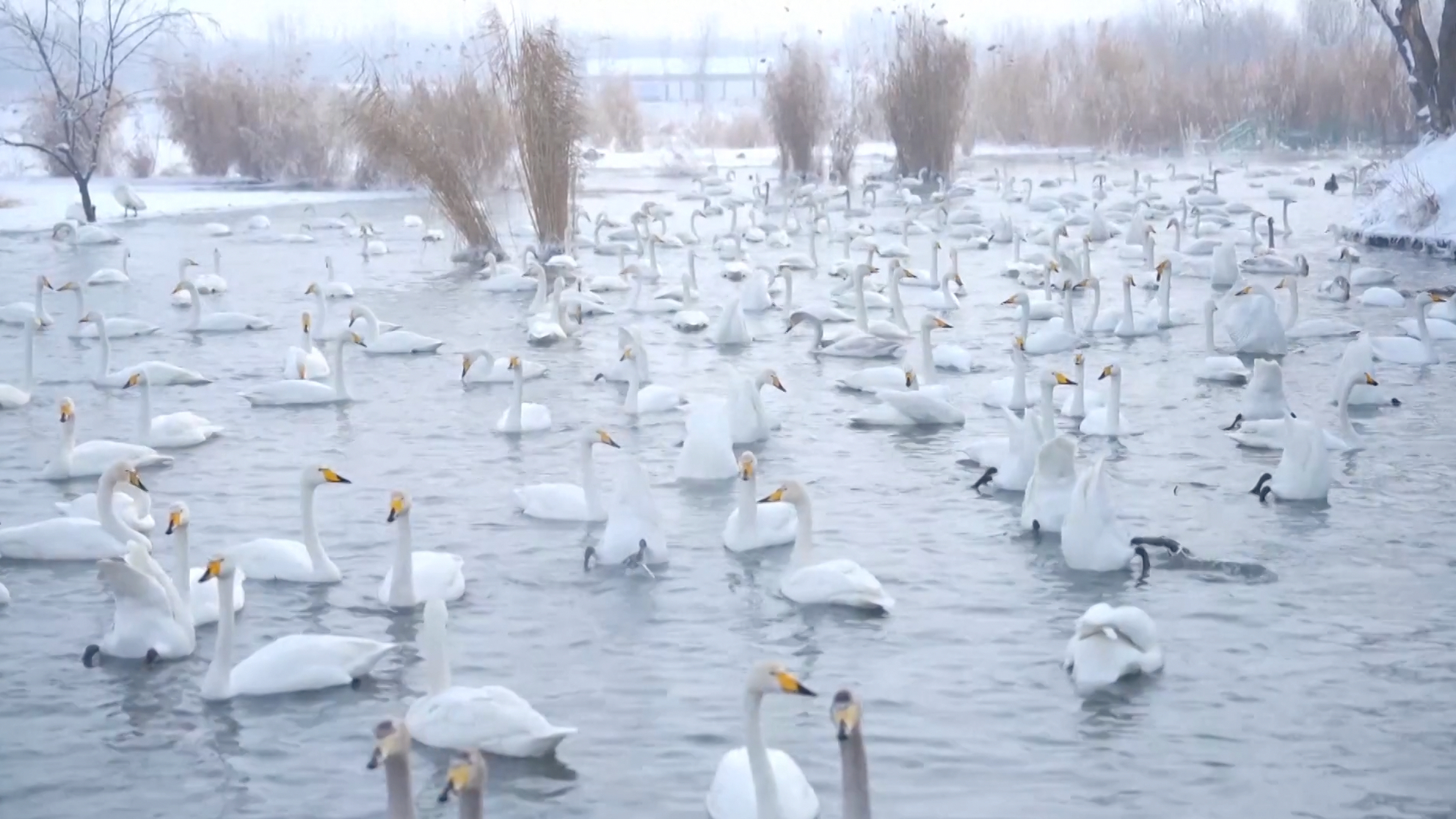 Xinjiang: Tausende Singschwäne tanken Kraft für den Rückflug