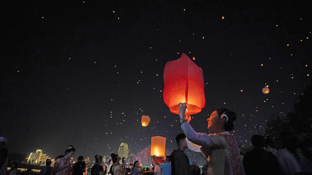 Himmelslaternen beleuchten Nachthimmel
