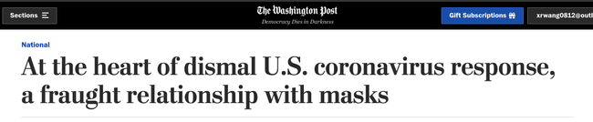 Die Washington Post weist darauf hin, dass es in den Vereinigten Staaten keine Kultur des weit verbreiteten Gebrauchs von Masken zur Verteidigung der Interessen der öffentlichen Gesundheit gibt.
