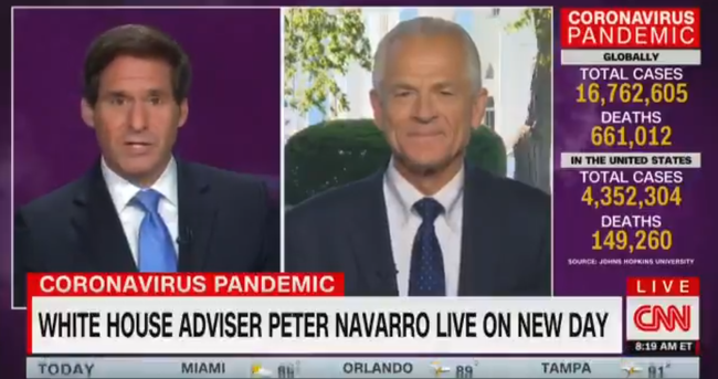 Am Mittwoch hat der Handelsberater des Weißen Hauses, Peter Navarro, in einem Online-Interview mit dem US-Fernsehsender CNN wiederholt das Wort „China-Virus“ benutzt.