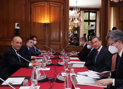 Der Staatskommissar und chinesische Außenminister Wang Yi hat am Samstag in Paris den französischen Außenminister Jean-Yves Le Drian getroffen.
