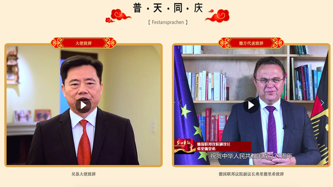 Die chinesische Botschaft in Deutschland hat am Montag einen Online-Empfang zur Feier des 71. Jubiläums der Gründung der Volksrepublik China veranstaltet.
