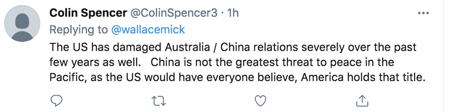 Internetnutzer haben kommentiert: „In den letzten Jahren haben die USA auch die Beziehungen zwischen Australien und China schwer geschädigt. China ist gar nicht die größte Bedrohung für den Frieden in der Pazifischen Region. Die USA hoffen, dass alle Leute dies glauben. Aber tatsächlich steht dieser Titel voll und ganz den USA zu.“