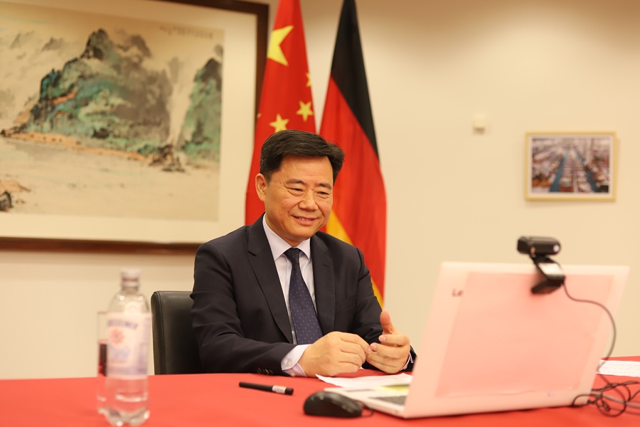 Auf Einladung der Stiftung für Familienunternehmen in Deutschland hat der chinesische Botschafter in Deutschland Wu Ken am Freitag an der Veranstaltung „Tag des deutschen Familienunternehmens 2021“ teilgenommen.