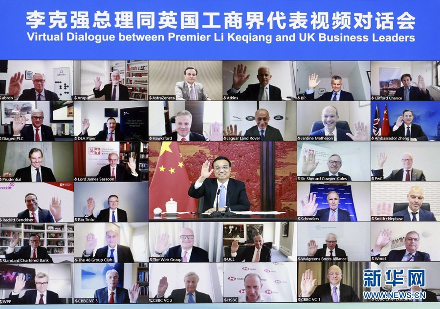 Chinas Ministerpräsident Li Keqiang hat am Dienstagnachmittag einen Videodialog mit Vertretern der britischen Wirtschaft abgehalten. Im Mittelpunkt standen die chinesisch-britischen Beziehungen und die praktische Zusammenarbeit, die COVID-19-Pandemie, die Bekämpfung des Klimawandels, die Optimierung des Geschäftsumfelds, die Vertiefung der Zusammenarbeit im Dienstleistungshandel und die Förderung des kulturellen Austauschs. Vertreter von mehr als 30 multinationalen Unternehmen und Leiter renommierter Organisationen nahmen daran teil.
