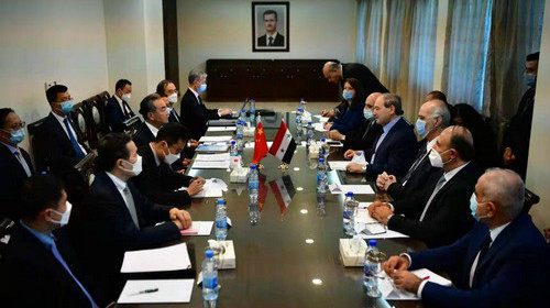Der chinesische Außenminister traf am gleichen Tag auch seinen syrischen Amtskollegen Faisal Mekdad. Bei dem Gespräch stellte er Chinas Vorschläge zu einer vollständigen Lösung der Syrien-Frage vor. Erstens müssten die Souveränität und territoriale Integrität Syriens respektiert werden, sagte Wang Yi. Zweitens sollten der Verbesserung des Lebens des Volkes Priorität eingeräumt und der Wiederaufbau beschleunigt werden. Drittens müsse Terrorismus effektiv bekämpft werden. Viertens solle an der politischen Richtung von Toleranz und Versöhnung festgehalten werden, so der chinesische Außenminister.