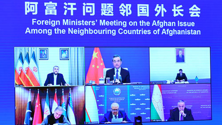 Der chinesische Staatskommissar und Außenminister Wang Yi hat am Mittwoch in Beijing per Videolink am ersten Treffen der Außenminister der Nachbarländer Afghanistans teilgenommen.