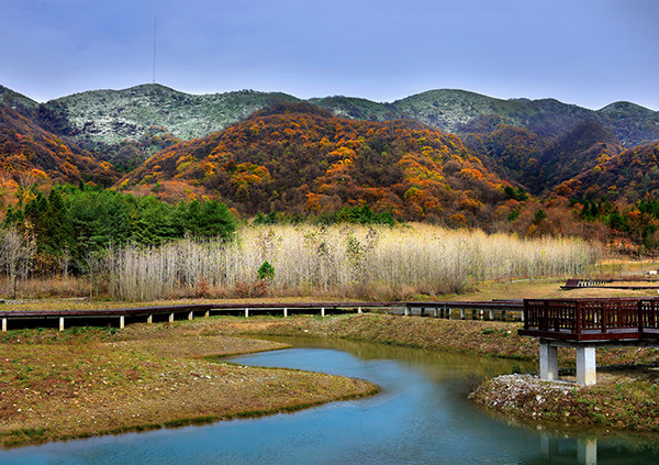 Mit einer Höhe von 1.400 Metern über dem Meeresspiegel hat Yueba einen zwölf Quadratmeter großen Feuchtboden-See mitten in der Berglandschaft. Am Ufer des klaren Sees sind üppige Bäume und Gräser zu sehen. Der spiegelartige See bildet mit einem vier Kilometer langen Feuchtboden-Steg sowie Blumensträuchern und Pavillons eine schöne Landschaftsszene und ist ein beliebtes Reise- und Erholungsziel.