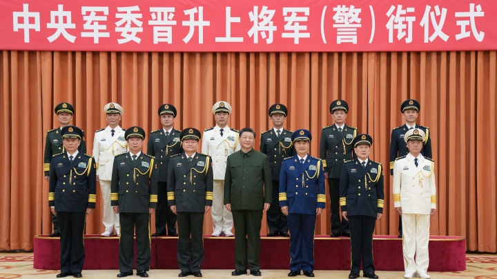 Chinas Staatspräsident Xi Jinping hat sieben hochrangige Offiziere in den Generalsrang befördert, den höchsten Rang für Offiziere im aktiven Dienst in China. Xi Jinping, der auch Vorsitzender der Zentralen Militärkommission des Landes ist, überreichte den Offizieren am Freitag bei einer Zeremonie in Beijing die entsprechenden Urkunden und gratulierte ihnen.