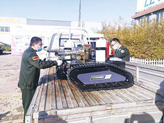 Chen Liang ist Firmleiter des in der Stadt Dezhou, Provinz Shandong, angesiedelten Ausrüstungsherstellers Levepower, der sich auf Raupenfahrzeuge spezialisiert hat. Der Desinfektionsroboter, den das Unternehmen im letzten Monat nach intensiver Forschung und Entwicklung gefertigt hat, sieht wie ein Mini-Panzer aus und ist Angaben der Ingenieure zufolge imstande, 25 Liter flüssiges Desinfektionsmittel zu transportieren und eine Fläche von zehntausend Quadratmetern auf einmal zu desinfizieren.