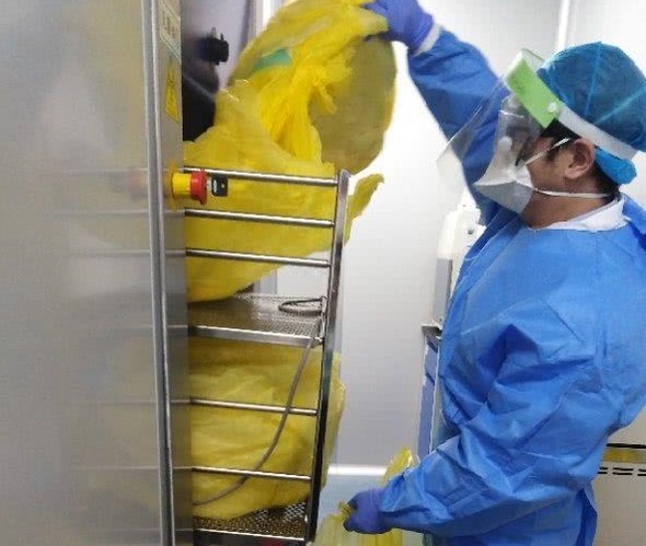 Als „Goldstandard“ für die Diagnose einer Infektion von COVID-19 muss jeder Schritt im Testprozess präzise und vorsichtig durchgeführt werden. Denn das neuartige Coronavirus ist hoch ansteckend. Bevor die entnommenen Testproben in das P3-Labor transportiert werden, müssen sie zunächst durch das „Air Lock“, zu Deutsch Luftschleuse. Es verfügt über Doppeltüren, die nicht gleichzeitig geöffnet werden können. Dadurch wird sichergestellt, dass die während des Probentransfers angesaugte Luft zwischen den Doppeltüren isoliert wird. Die Umgebung außerhalb des Labors kann dadurch nicht verschmutzt werden