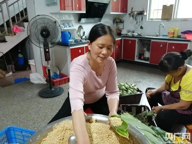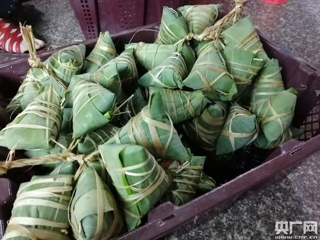 „Um die Klebreisklößchen einzuwickeln, muss man geschickte Techniken beherrschen. Die wichtigsten drei Faktoren sind die Auswahl der Materialien, die Gewürze und die Hitze beim Dämpfen.“ In der Produktionswerkstatt wickelte Song Yuhua geschickt die Klößchen ein. „An normalen Tagen mache ich täglich fast 500 bis 600 Klebreisklößchen. Bei dem Drachenbootfest sind die Angebote immer sehr gefragt. Wir müssen jeden Tag mindestens 3.000 Zongzis machen", so Song Yuhua.