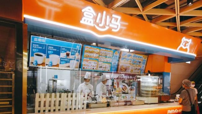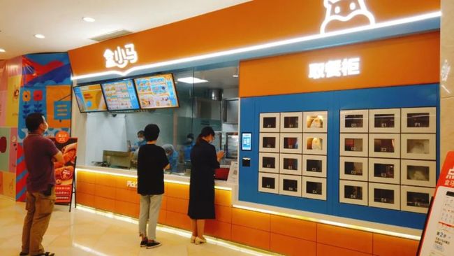 Es ist das erste Geschäft von Hexiaoma in Shanghai, einem neuen Geschäftsmodell der Supermarktkette Freshippo. Es liegt direkt an der U-Bahn-Station „Shanghai Museum“ der Linie 13. Kunden können dort nicht nur direkt vor Ort ihr Essen kaufen, sondern auch per Handy-App Bestellungen aus der Ferne aufgeben und bei der Ankunft ihr fertiges Essen direkt mitnehmen.