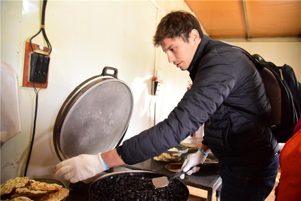 Maximiliano Javier Carrera Camacho aus Mexiko schmeckt das Gebäck sehr gut. Er sagt: „Die Zubereitung ist originell und sein Aroma ist ganz schön intensiv. Die Regale voller Gebäck erinnern mich an die fleißigen Bauern in China sowie ihren standhaften Willen.