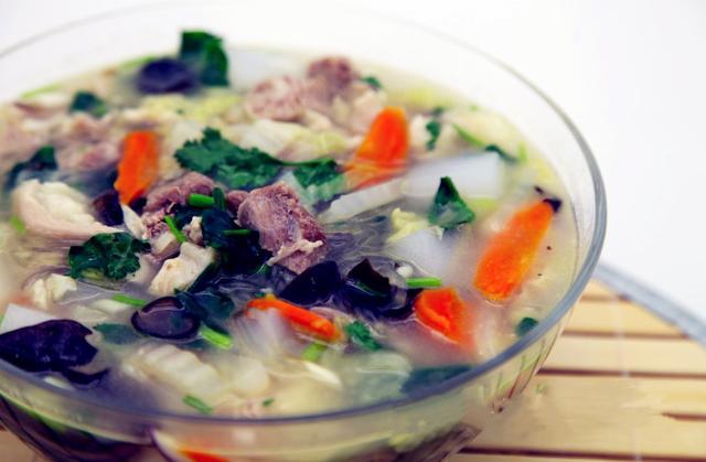 Essen von Hammelfleisch und Fadennudelsuppe