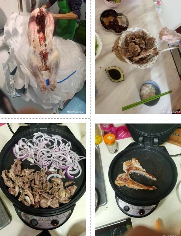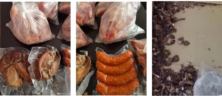 „Meine Eltern haben mir getrocknetes mageres Fleisch, geschnittene gebratene Ente und gedämpftes Hähnchen geschickt, da sie wissen, dass ich nur mageres Fleisch esse und ich diese Gerichte nicht kochen kann. Sie haben außerdem gelernt, das rohe Fleisch in einer Vakuumverpackung mit zwei Flaschen gefrorenem Wasser zu transportieren.“